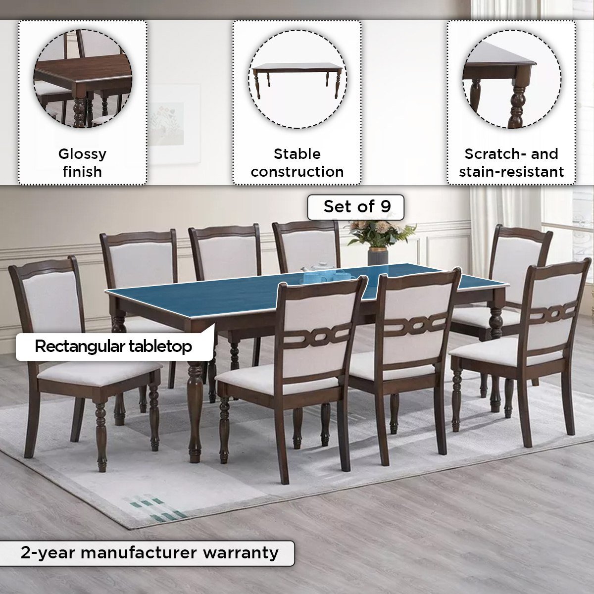 • Total Components: 9-Piece Dining Set